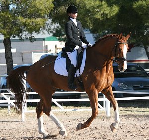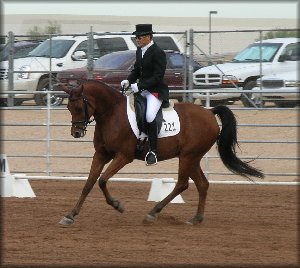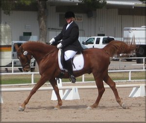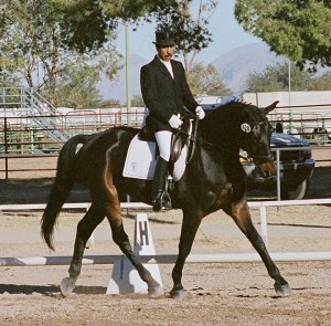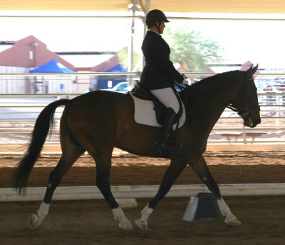SANSKRIT, owned by Lenore Kremen, ridden by Julie Sodowsky, made a successful debut at Second level at the ADA Nov. 2006 show winning Second level test 3 with 64.255% and winning First level test 4 with 69.444%.