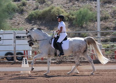 Congrats to Secret, ridden by Juan Lopez Torres, owned by Dorie Sanders, who debuted in dressage at the July Roadrunner II Show in Tucson by winning Training Level test 2 with a 63%. |