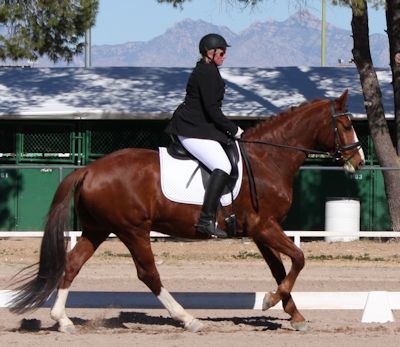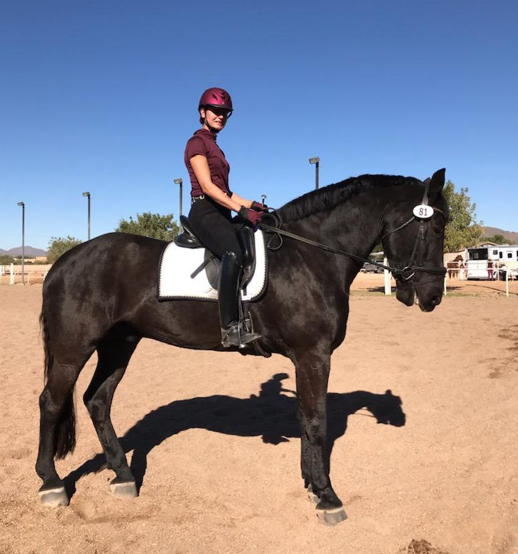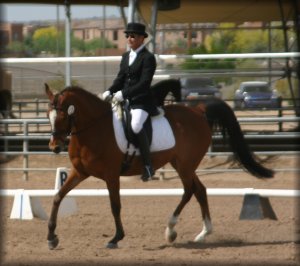 The Tucson Winter Heat dressage show was their first show together and they had a successful debut scoring from 62-64% at Training Level. They garnered a first and second place and 2 thirds and qualified for Arizona State Championships on their first outing!