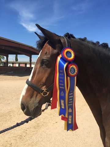 Lori Hanes' 4 year old mare, Pippa has had a successful debut at the 2017 fall shows in Phoenix and Tucson winning a total of 3 classes with Julie Sodowsky riding, with scores ranging from 62-66%. |